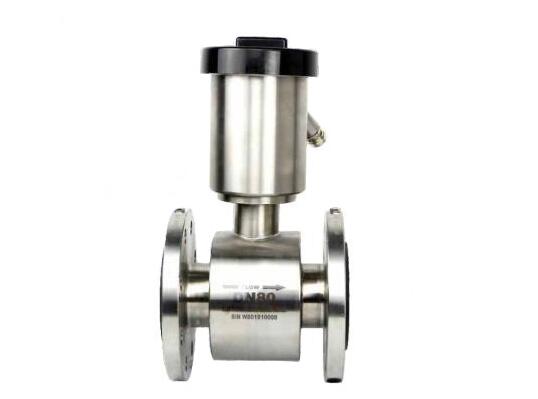 根據法拉第電磁感應原理,在與測量管軸線和磁力線相垂直的管壁上安裝了對檢測電極,當導電液體沿測量管軸線運動時,導電液體切割磁力線產生感應電勢,此感應電勢由兩個檢測電極檢出,數值大小與流量成正比例,其值為: