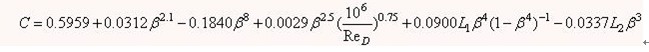 (3)式中: 直徑比,β=d/D;D值的單位為mm;當(dāng)間距符合法蘭取壓方式時(shí), L1=L2=25.4/D;當(dāng)間距符合角接取壓方式時(shí),L1=L2=0。