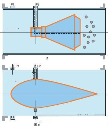 在同一密閉管道內(nèi),當壓力降低時,速度會增加,當介質接近錐體時,其壓力為P1,在介質通過錐體的節(jié)流區(qū)時,速度會增加,壓力會降低為P2,如圖一所示,P1和P2都通過V型錐形流量計的取壓口引到差壓變送器上,流速發(fā)生變化時,差壓值會隨之增大或減小。也就是說對于穩(wěn)定流體,流量的大小與差壓平方根成正比。當流速相同時,錐體節(jié)流面積越大,則產(chǎn)生的差壓值也越大。V型錐流量計屬精度、高穩(wěn)定性的新型差壓式流量儀表。