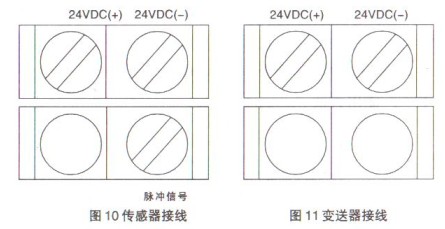 變送器為兩線制:采用二芯電纜,渦街“+”、“-”端子分別接+24V及測(cè)試儀表信號(hào)輸入“+”端,信號(hào)“-”端與24VDC“-”端鏈接,該回路輸出4~20mA。見(jiàn)圖11
