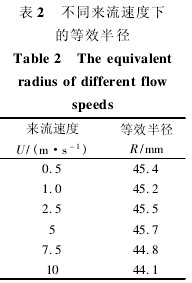 為了得到不同來流速度下的等效半徑,利用MATLAB 對(duì)各組數(shù)據(jù)進(jìn)行相應(yīng)理論流速的插值運(yùn)算,得到如表 2 所示的數(shù)據(jù)。