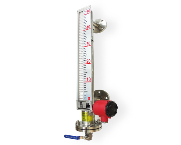 控制型是在翻柱液位計的基礎上增加了磁控開關,在監測液位的同時磁控開關信號可用于對液位進行控制或報警;遠傳型是在翻柱液位計的基礎上增加了 4~20mA 變送傳感器,在現場監測液位的同時將液位的變化通過變送傳感器、線纜及儀表傳到控制室,實現遠程監測和控制。