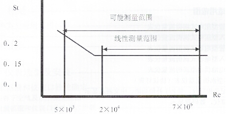 由上式可見,VSF輸出的脈沖頻率信號(hào)不受流體物性和組分變化的影響,即儀表系數(shù)在一定雷諾數(shù)范圍內(nèi)僅與旋渦發(fā)生體及管道的形狀尺寸等有關(guān)。但是作為流量計(jì)在物料平衡及能源計(jì)量中需檢測(cè)質(zhì)量流量,這時(shí)流量計(jì)的輸出信號(hào)應(yīng)同時(shí)監(jiān)測(cè)體積流量和流體密度,流體物性和組分對(duì)流量計(jì)量還是有直接影響的。