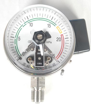普通壓力表和接觸裝置兩個(gè)獨(dú)立部分組成。工作穩(wěn)定可靠,廣泛用于測(cè)量對(duì)銅、鋼及其合金無腐蝕作用的液體、氣體等介質(zhì)的壓力和發(fā)出電信號(hào),用于自動(dòng)控制系統(tǒng),接通控制電路,達(dá)到自動(dòng)控制的報(bào)警得目的。